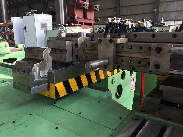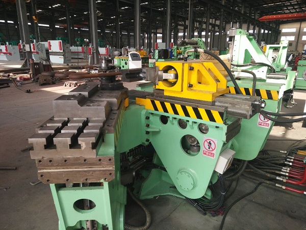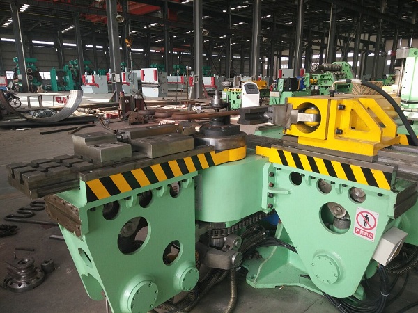 1、產(chǎn)生一定比例頂鐓力使管子截面產(chǎn)生附加壓應(yīng)力,以抵消管子(或型材)外壁拉應(yīng)力或部分拉應(yīng)力,防止管子(或型材)外壁受拉應(yīng)力而變薄或開裂,該頂鐓力的大小隨著管子(或型材)尺寸和材料性能而異,且隨著彎曲角度的變化而改變,故該機構(gòu)采用伺服比例結(jié)構(gòu)。 2、由于使用頂鐓彎曲工藝,頂鐓力遠大于壓料道軌模(c)和防皺模(g)產(chǎn)生的摩擦阻力之和,故可忽略不計壓料道軌模(c)和防皺模(g)對彎管(曲)設(shè)備力矩的影響。 |