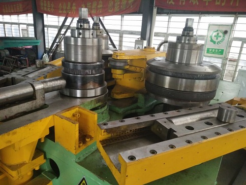 05.三輥主動(dòng)軸選用二次電渣重熔氮化鋼,加工工序十多道。三輥回轉(zhuǎn)系均采用剛性好,精度高的進(jìn)口德國(guó)FAG球面滾子軸承支撐和雙列圓錐滾子軸承復(fù)合支撐,其中兩下輥更是采用滑動(dòng)和滾動(dòng)相結(jié)合的復(fù)合支撐,鋼性好,精度高,可同時(shí)承受巨大的徑向力和軸向聯(lián)合負(fù)載。具有回轉(zhuǎn)損耗小,熱變形小,精度保持性好,壽命長(zhǎng)等特點(diǎn),滾動(dòng)嚴(yán)禁使用銅套。