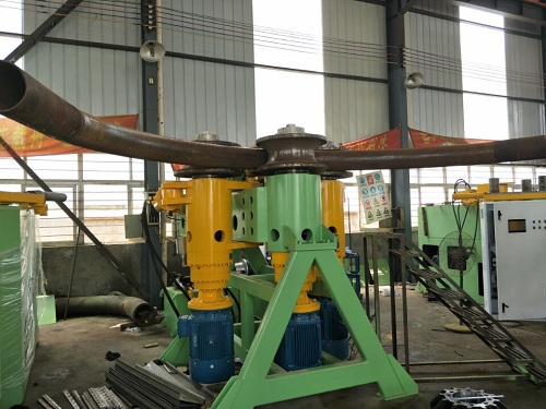 1.兩側(cè)托輥均由三個油缸驅(qū)動托料回轉(zhuǎn)裝置,實現(xiàn)三維運動(即:上下、左右、前后),防止非對稱截面型材彎曲時的扭曲變形。 2.亦可實現(xiàn)螺旋盤彎時對螺距的控制。 |