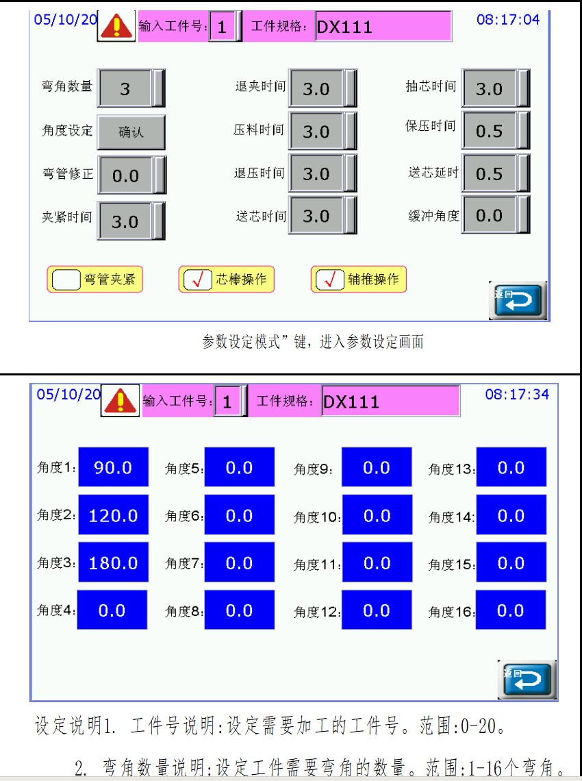 ● 微電腦控制器(人機界面為彩色觸摸屏)可預(yù)置16種彎曲角度,設(shè)有機械比例放大角度結(jié)構(gòu),重復(fù)精度可達±0.1度。