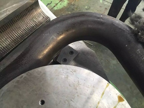 2、在無插芯彎曲工藝中可制作反變形槽,預(yù)先給以管外壁一定量的反變形,可抵消或減小彎后的截面(橢圓)變形。