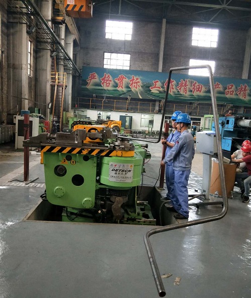 3、彎曲結束時,主模(a)旋轉停止時的角度就是所需要的彎曲角度。使用多球芯軸(f)和防皺模(g)保證管子(或型材)的橢圓度和內壁不起皺。