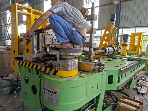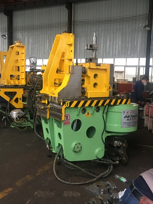 3、彎曲結(jié)束時(shí),主模(a)旋轉(zhuǎn)停止時(shí)的角度就是所需要的彎曲角度。使用多球芯軸(f)和防皺模(g)保證管子(或型材)的橢圓度和內(nèi)壁不起皺。