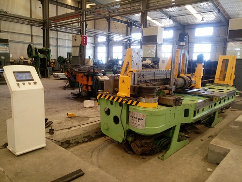 1、產(chǎn)生一定比例頂鐓力使管子截面產(chǎn)生附加壓應(yīng)力,以抵消管子(或型材)外壁拉應(yīng)力或部分拉應(yīng)力,防止管子(或型材)外壁受拉應(yīng)力而變薄或開(kāi)裂,該頂鐓力的大小隨著管子(或型材)尺寸和材料性能而異,且隨著彎曲角度的變化而改變,故該機(jī)構(gòu)采用伺服比例結(jié)構(gòu)。 2、由于使用頂鐓彎曲工藝,頂鐓力遠(yuǎn)大于壓料道軌模(c)和防皺模(g)產(chǎn)生的摩擦阻力之和,故可忽略不計(jì)壓料道軌模(c)和防皺模(g)對(duì)彎管(曲)設(shè)備力矩的影響。 |