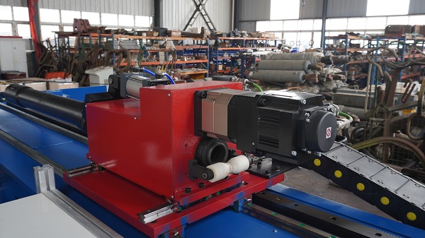 1、產(chǎn)生一定比例頂鐓力使管子截面產(chǎn)生附加壓應(yīng)力,以抵消管子(或型材)外壁拉應(yīng)力或部分拉應(yīng)力,防止管子(或型材)外壁受拉應(yīng)力而變薄或開裂,該頂鐓力的大小隨著管子(或型材)尺寸和材料性能而異,且隨著彎曲角度的變化而改變,故該機(jī)構(gòu)采用伺服比例結(jié)構(gòu)。 2、由于使用頂鐓彎曲工藝,頂鐓力遠(yuǎn)大于壓料道軌模(c)和防皺模(g)產(chǎn)生的摩擦阻力之和,故可忽略不計壓料道軌模(c)和防皺模(g)對彎管(曲)設(shè)備力矩的影響。 |